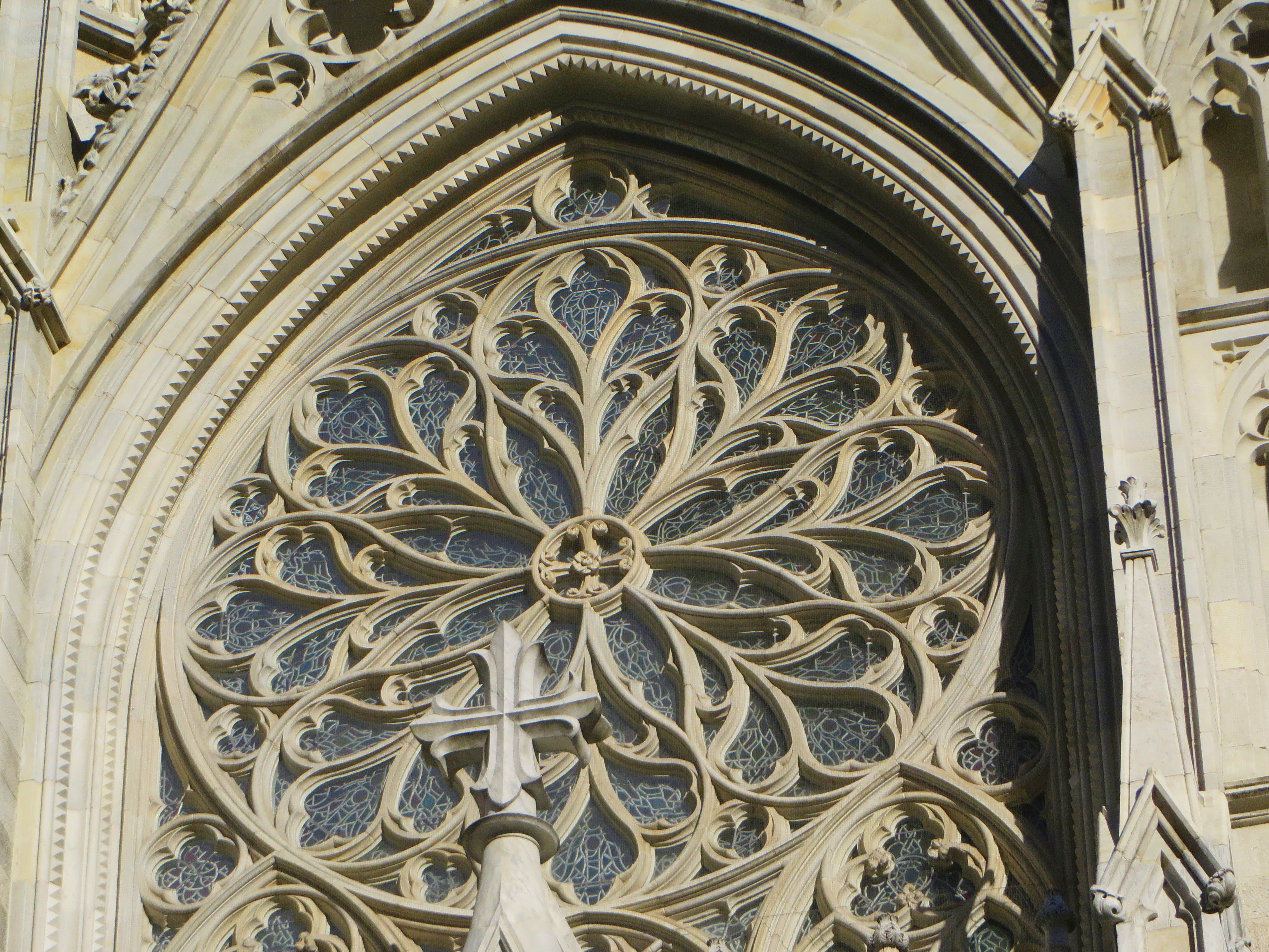 Its many spires and curved arches were all very beautiful, but what caught my eye was the round emblem in the front of the church. It had spirals and twirls that made it resemble an elegant flower and a cross at the same time, with clear mosaics in the background.