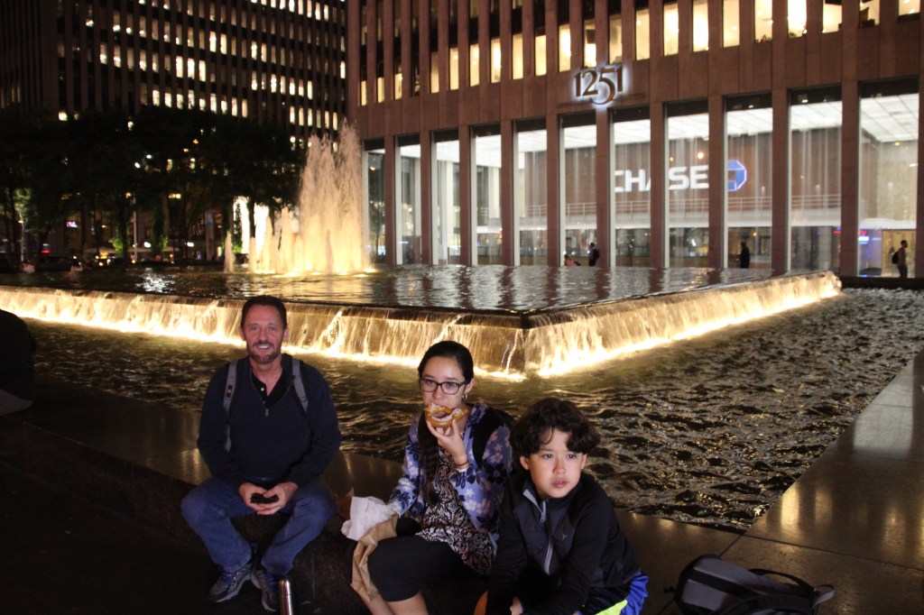 We walked back a few blocks until we arrived at a fountain area in front of a bank, where a couple food carts were parked. Mhmm, New York street food! I had a Phili Cheese Steak Sandwich, which was savory and filling.