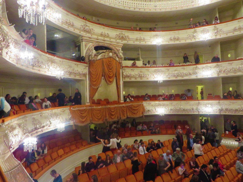 Mikhailovsky Theater was only a five minutes walk from our apartment, and once we entered, I was met by a bustling crowd of well-dressed people, all cramming toward the cloak room to get rid of their coats before the ballet began.