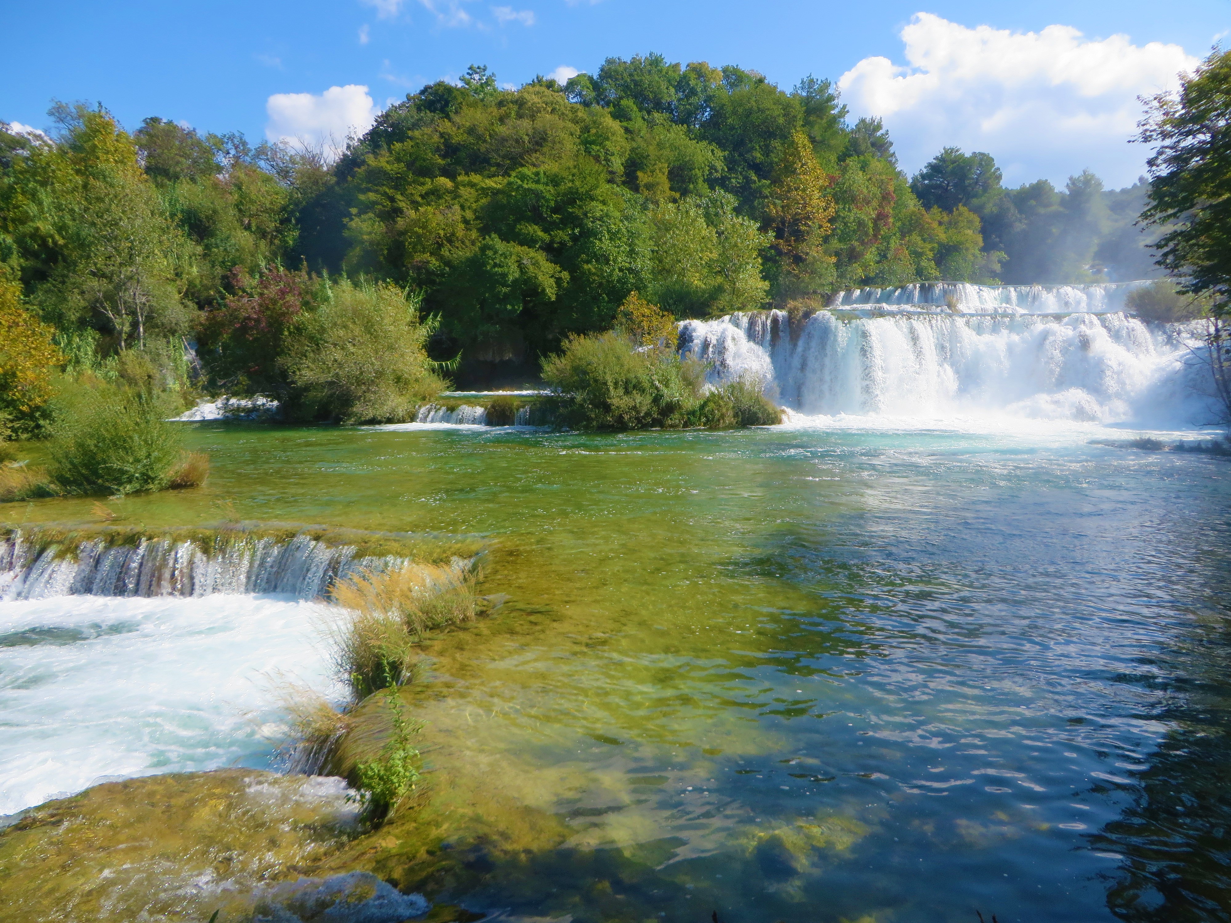 We continued on through an area of shops and restaurants, and I gasped in amazement as I saw, through the trees and people, the Krka Waterfalls.