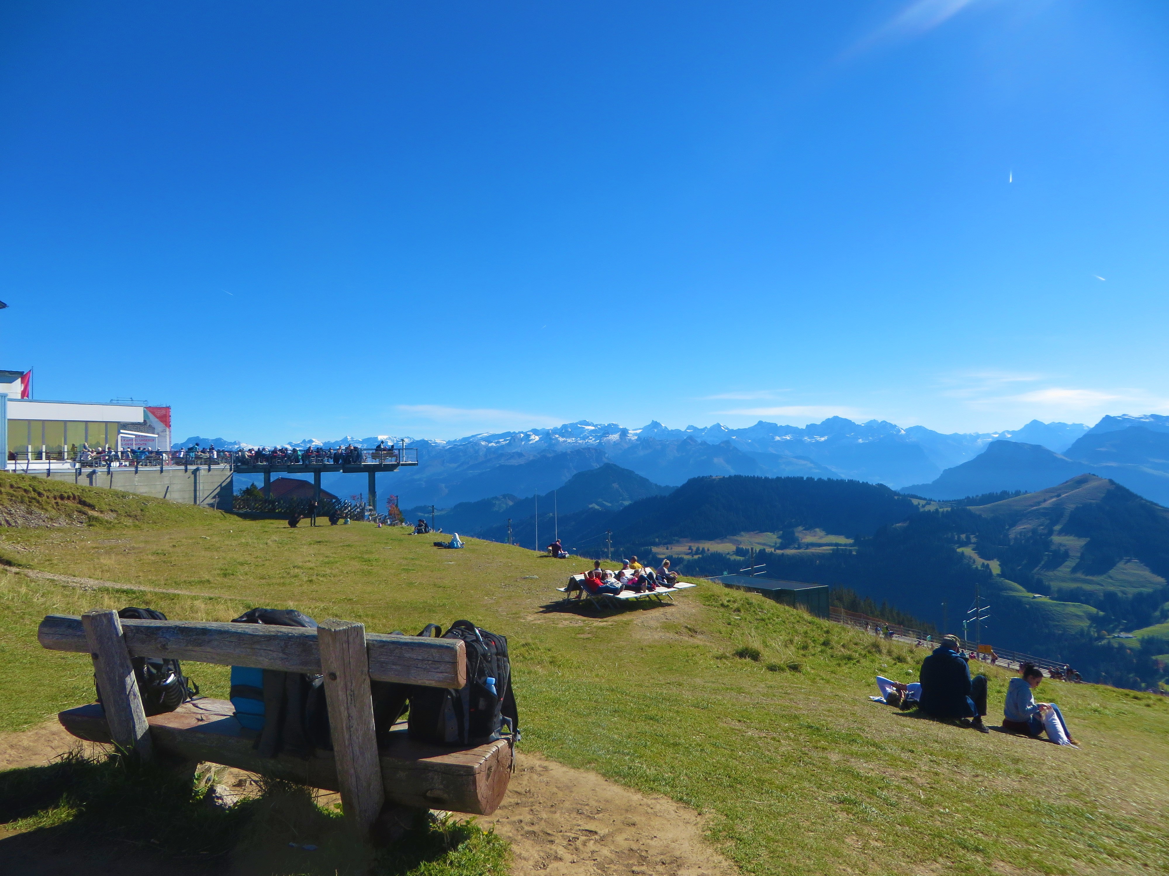 Soon, we arrived at our destination, and disembarked. The cog-wheel station was very conveniently right in front of us, and we managed to board onto the front of the crowded train. It was quite a terrifying experience climbing up at such a steep slope, feeling as if the train was going to tip backwards and we would all fall down the mountain. But the views were magnificent, the glassy water of Lake Lucerne pooling underneath the mountains in the distance covered in misty lush green forests. The slow ascent built up the suspense of what I would see when I reached the top.