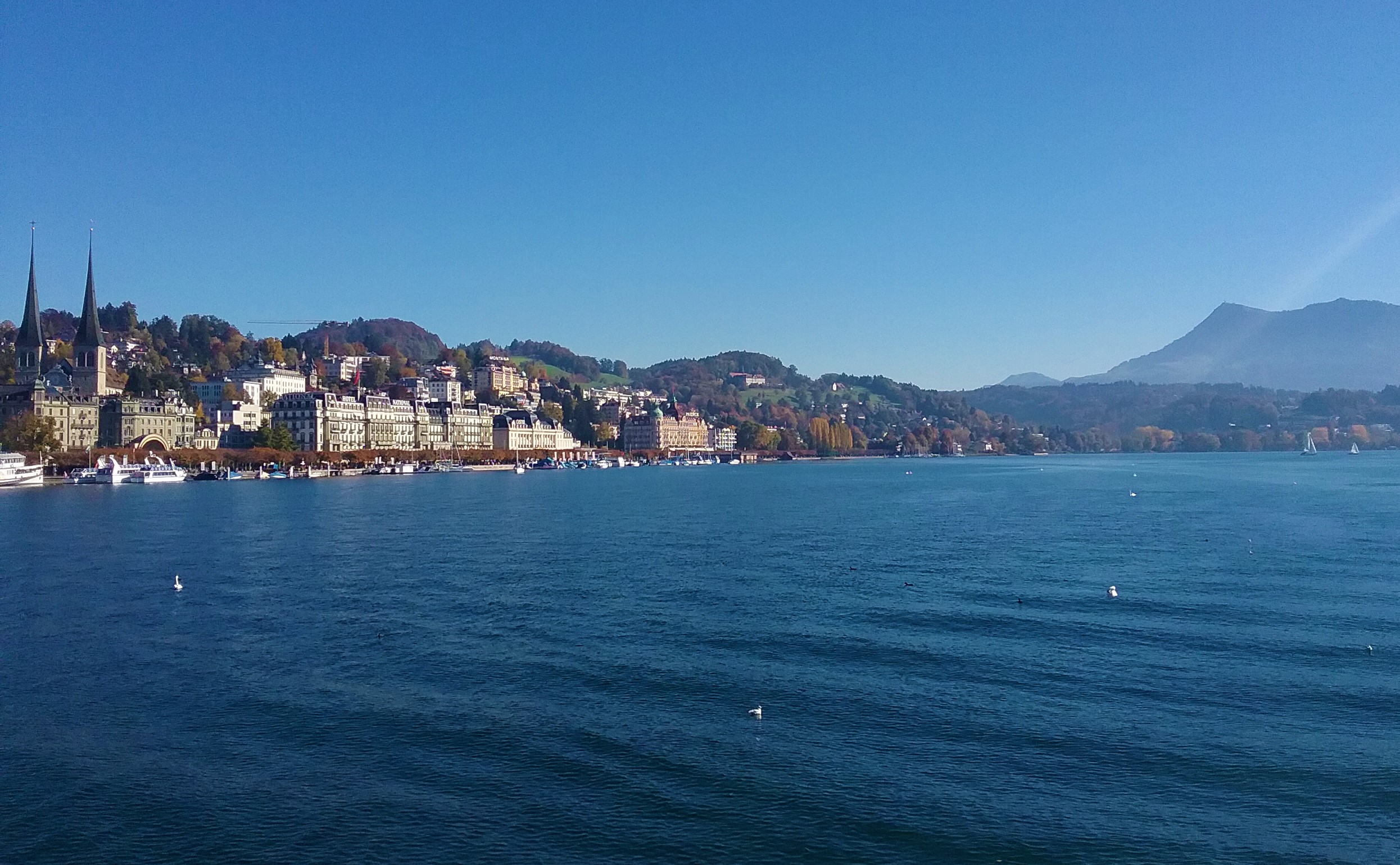When we disembarked from the train shortly after and emerged from the station, the town of Lucerne did not disappoint me. What a beautiful bridge over such blue waters! What a dazzling lake pooling beneath the mountains!