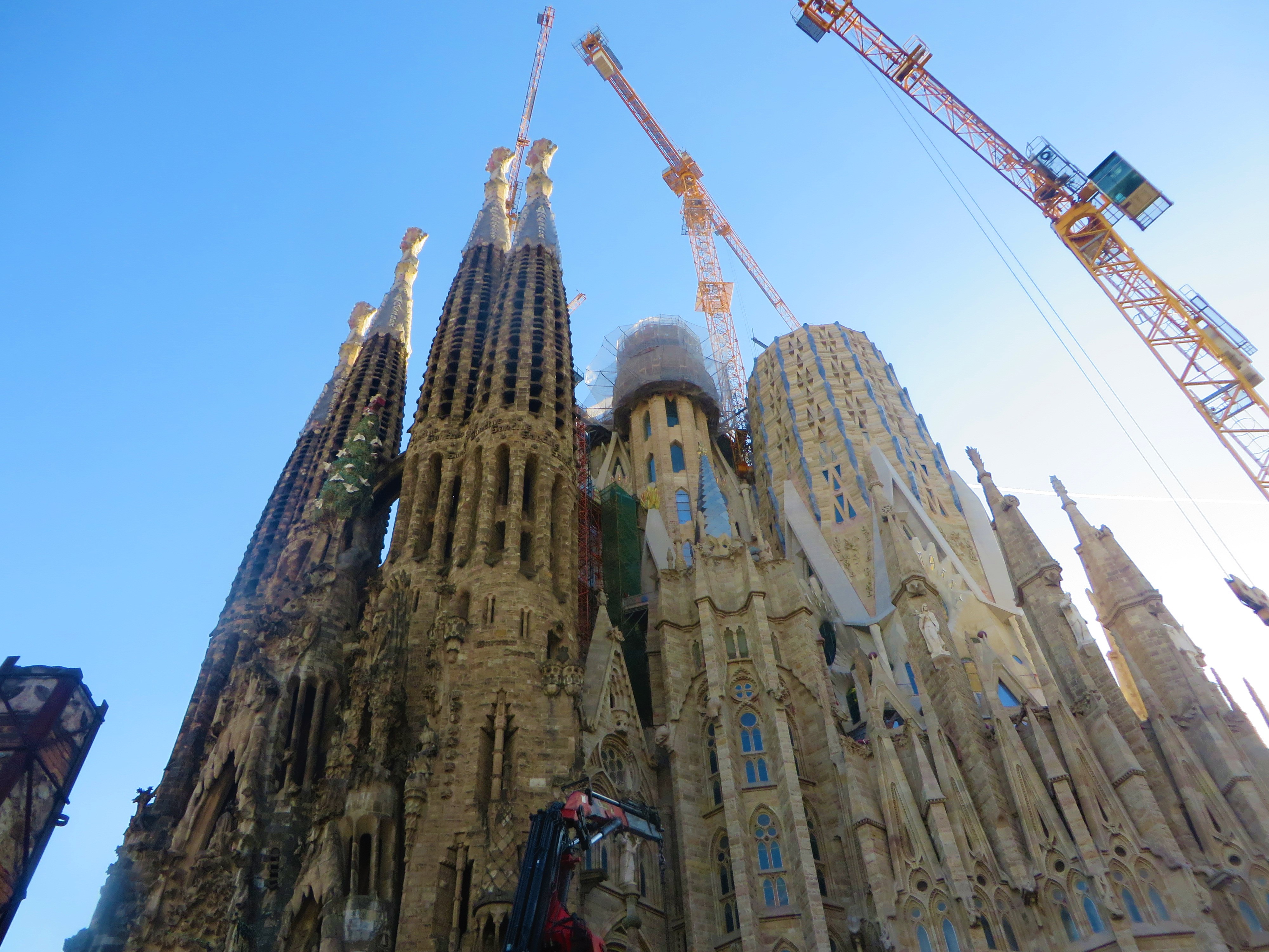 I wasn’t to blame. Stiff orange skyscrapers towered over the sandy structure like menacing claws, and the construction-zone like atmosphere was not appealing. But as we rounded the corner to face the front of the Sagrada Familia, I gasped at the sight which was further augmented by Papa’s quick history lesson.