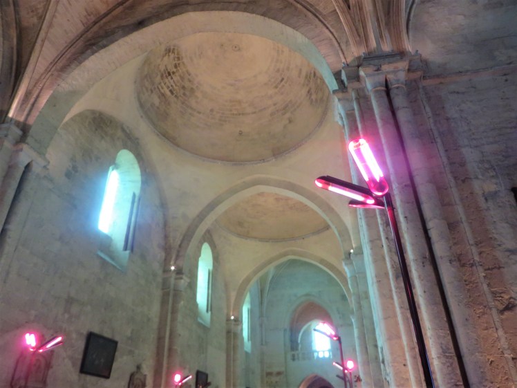 Next there was a chapel that looked rather plain and insignificant but for a few startlingly colorful paintings of the four Evangelists (Matthew, Mark, Luke, and John), the Virgin Mary, and St. John carrying the Easter Lamb. During the French Revolution, it was first converted into a grocery and then sold to a cooper who renovated it to make oak barrels. To curve the wood, he had to burn it, which produced smoke and soot which covered all the walls. This soot protected the paintings against ultraviolet light, which is why they retained their incredible color.