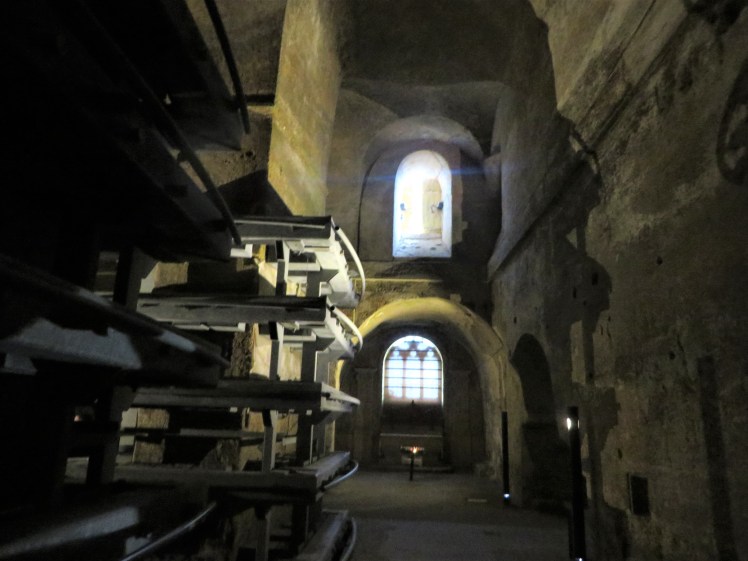 Then we entered the catacombs of the church, coming from the Greek “kata” (under) and “tumba” (tomb). Underground tombs.