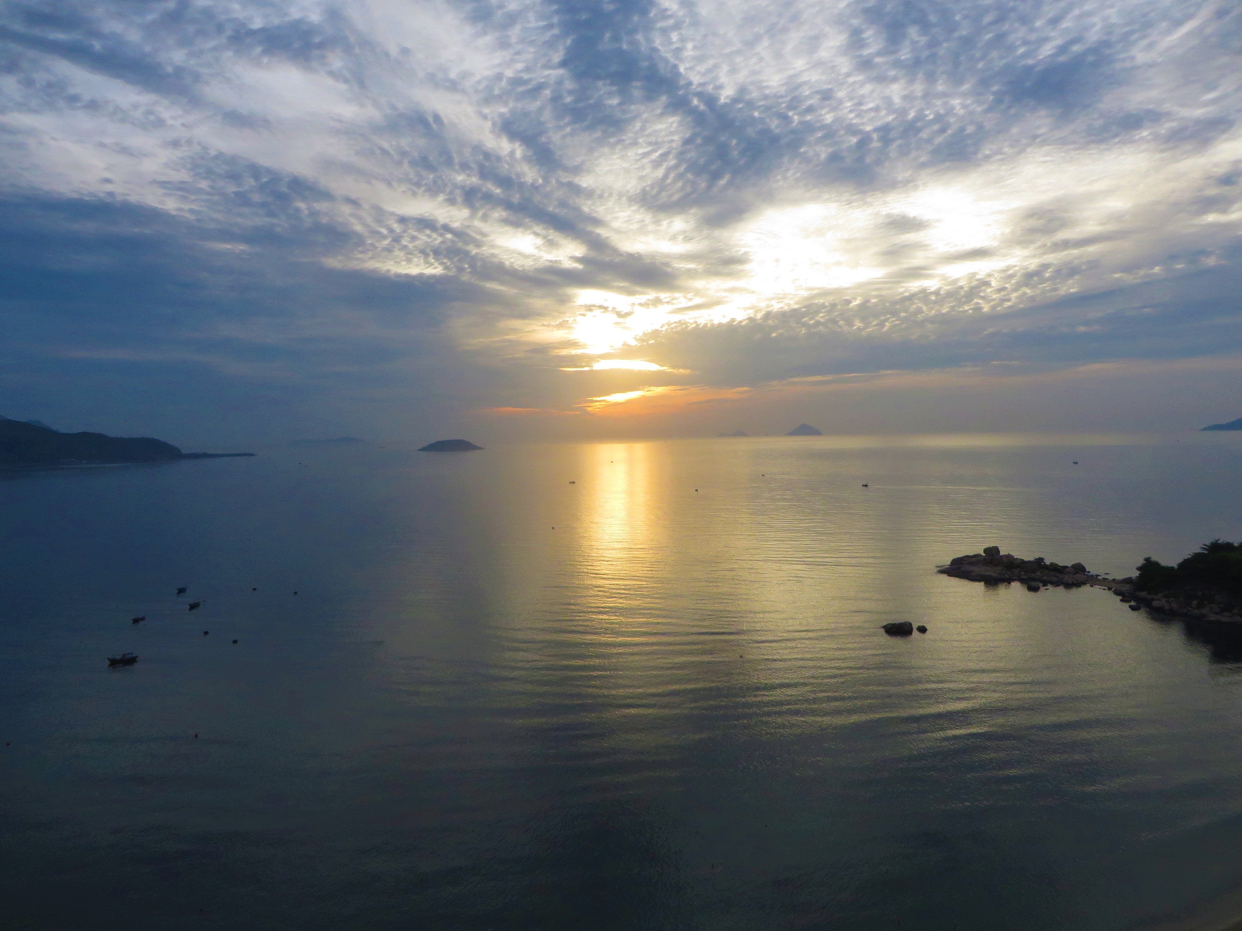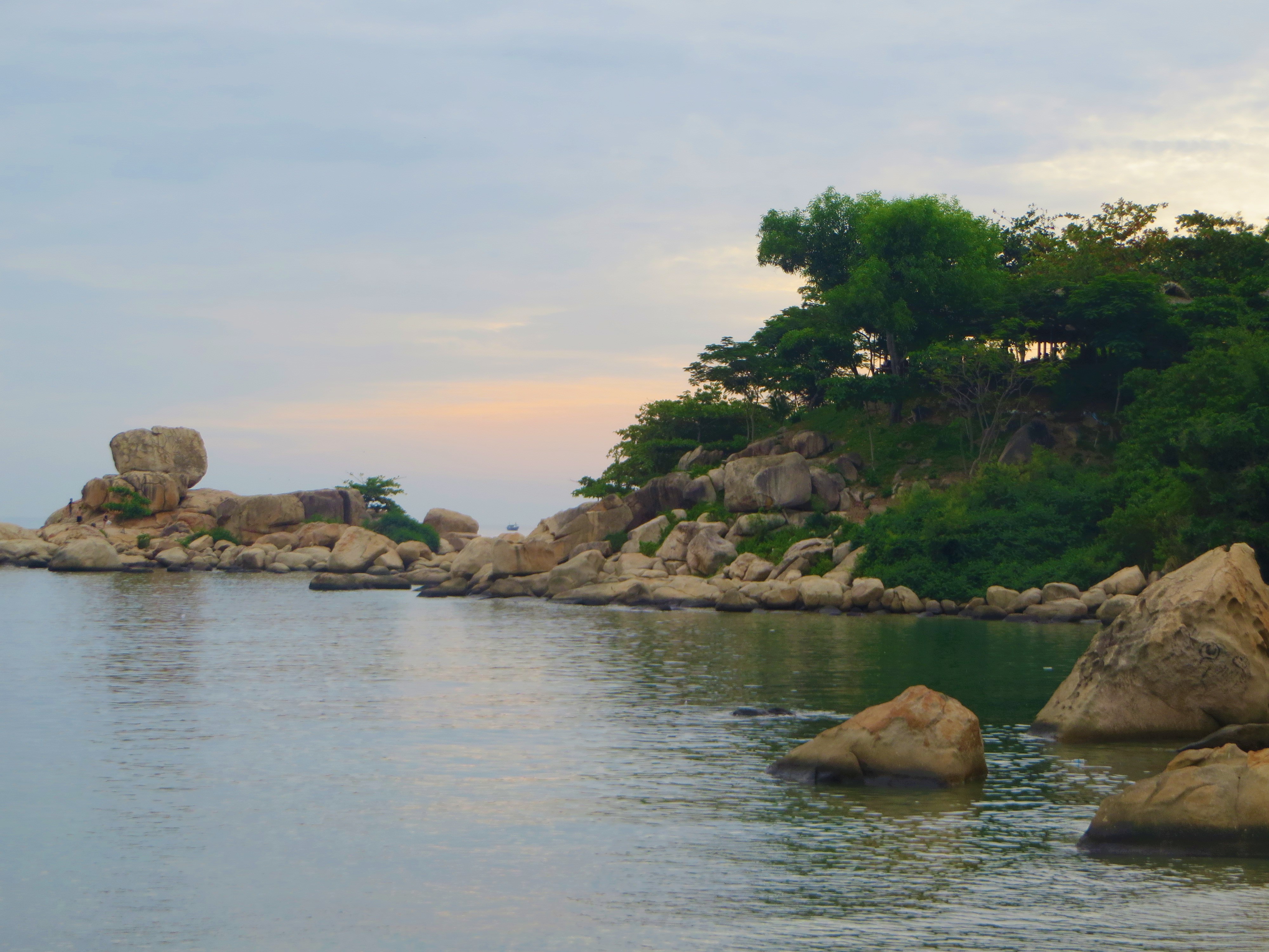 We reach the highest boulder/mountain and have a spectacular view of the lapping ocean capped with silver light. How beautiful it is! I’ve been to Vietnam more times than I can count, my first visit at a few months old, but this is the loveliest sight I have ever seen.